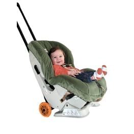 TravelMate Stroller Pram. Turn your car seat into a stroller and make your travels a breeze! The Universal Travelmate is a handled, wheeled attachment that is designed to work with most toddler car seats. It is light-weight and easily removable by simply turning a few knobs. Most parents areaware that the FAA strongly recommends that all children under 40 lbs travel by plane in an FAA approved car seat. This presents a dilemma - how do you move the car seat and the various items of carry-on luggage through the airport and have a free hand to assist and tend to your child with?! Instead of carrying your car seat and child through the airport, you can wheel them. The gogo Kidz significantly lightens the load of parents on the go with toddlers and all their gear! It takes just seconds to attach and then your car seat and your child are ready to roll - right through the airport and down the jetway! In larger aircraft the Go Go Kidz Universal will actually roll right down the aisle of the plane to your seat. When you arrive at your seat simply place your child's car seat with the Travelmate still attached and buckle them in (a hint to make your life easier: ask the flight attendant for a Seatbelt Extender).