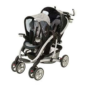 Graco Duo Stroller Pram. Life is busy and complicated enough when you have two small children: but with the Graco Quattro Tour Duo Double Stroller (Ionic) at least getting around is made a whole lot easier. This easy-to-use stroller is built to carry two children in comfortable style--and it includes plenty of great accessories and features to make mom and dad happy, too.This versatile stroller has two seats that can be configured for use with a toddler and an infant, or even with twins. The front, forward-facing seat, designed for toddlers up to 50 pounds. Dual snack/beverage holders keep food and drink close at hand, and a storage cubby beneath the seat offers room for your little one to stash his treasures. The seat has a three-point harness; a canopy keeps the sun and rain away, and a multi-position reclining back makes for a more comfortable ride.The back seat is elevated to give your child a clear view and is designed to accept all Graco SafeSeat and Graco SnugRide Infant Car Seats. Snap your baby's car seat into the stroller for easy, parent-facing transportation until your little one can sit up by herself; use the stroller without the car seat--with your child facing forward--from the time she can sit up (around 6 months of age) until she is up to 40 pounds in weight--so even when your child outgrows the infant car seat, you'll still be using the stroller Pram for a while to come. This back seat includes a three-point harness, a snack tray with two snack/beverage holders and an adjustable, flat-laying reclining seat for easy napping, as well as an adjustable canopy with a peek-a-boo window.Double strollers Pram can be bulky, making them difficult to push and to load into your car. But the Graco Quattro Tour Duo folds 20-percent smaller than other Graco double strollers to make storage and transport more convenient. Its lightweight construction and unique, ergonomic handles make the stroller easier and safer to maneuver, as do the lockable swivel front wheels with suspension.