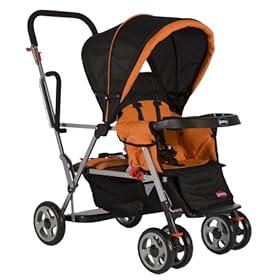 Strolling around has never been easier with two children. The versatile Caboose Stand-On Tandem allows an older child to stand on its patented rear platform while a younger child rides comfortably in front. If the standing child tires, they can turn around and rest on the padded rear seat. Fully equipped with a universal car seat attachment system, the Caboose can accommodate an infant in the car seat so you can use it as soon as your new arrival comes. And parents make out too because the Caboose is lightweight and folds up compactly. It also has a large basket and storage pockets for everything you'll need to take along with you. And the rear platform means no more lifting a heavier older child in and out of the stroller when they want to see or get tired. The Caboose Stand-On Tandem makes strolling two children a breeze!